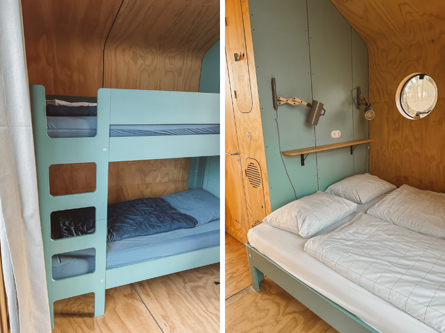 Bij Stayokay denk je misschien aan een ouderwetse jeugdherberg – dat was toch een beetje het beeld wat ik had – maar dat is helemaal niet (meer?) het geval. Zeker als je een Wikkelhouse boekt. Dit is een tiny house gemaakt van 24 lagen golfkarton. De binnenkant van het Wikkelhouse is afgewerkt met houten panelen en de buitenkant is afgewerkt met een coating, waardoor het weerbestendig is. Een duurzaam vakantiehuisje dus! En geen zorgen: het Wikkelhouse beschikt over een verwarming (en airconditioning, mocht je in de zomer gaan).